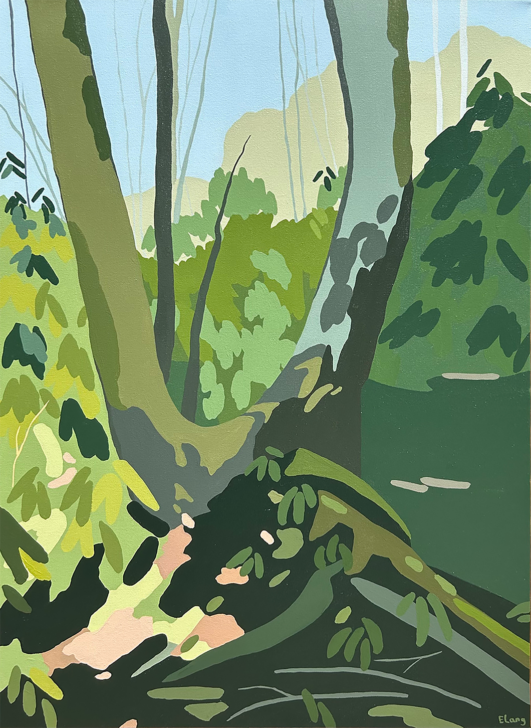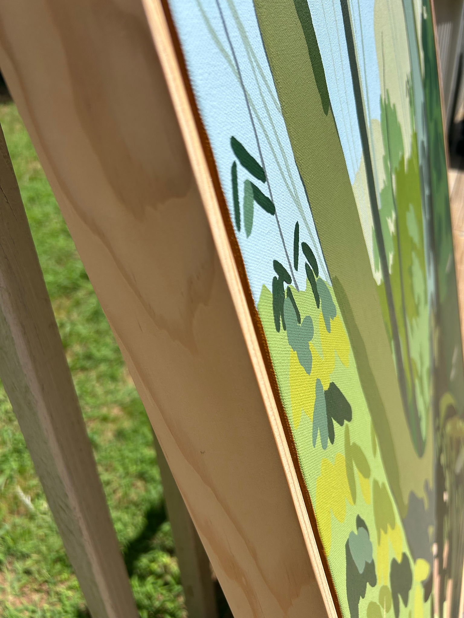 Frame is approximately 2.5" deep and adds about 1/2" to all sides of artwork